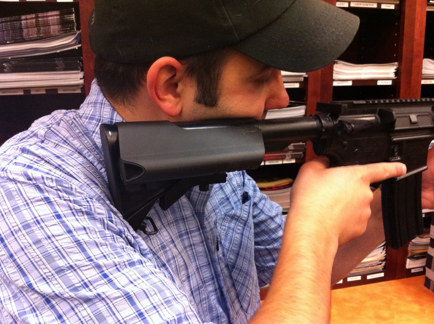 Since we have the video showing installation of the stock, let’s talk about some of the cool things the E-VolV Battle Stock adds to your rifle.  First, the obvious enhancement is to your cheek weld.  As any shooter worth his salt will tell you, having a proper cheek weld is incredibly important to consistent, repeatable accuracy.  I found the cheek weld to be quite comfortable, though I was using a dummy AR in the office and couldn’t test it at the range by spending a bit of brass. Still, I could feel the difference immediately.  Once installed, the E-VoLV Stock felt very sturdy and I wasn’t worried about it breaking or letting me down when needed.  Right out of the box it’s tough to tell just how strong something like this is, and its light weight made me worry about durability, but once mounted it felt tough as nails.