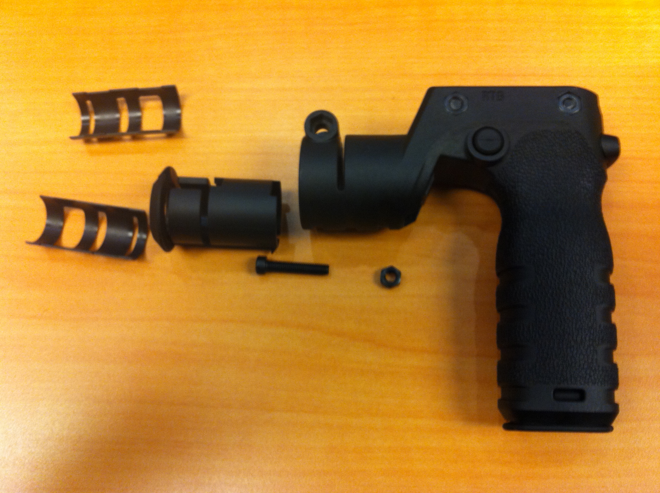 The MFT React Torch and Vertical Grip is a great way to not only add stability to your AR, but it also provides some cool solutions for adding a weapon light.  Check out the picture.  Because of some smart inserts you can install a flashlight with diameters between 5/8″ and 1″.